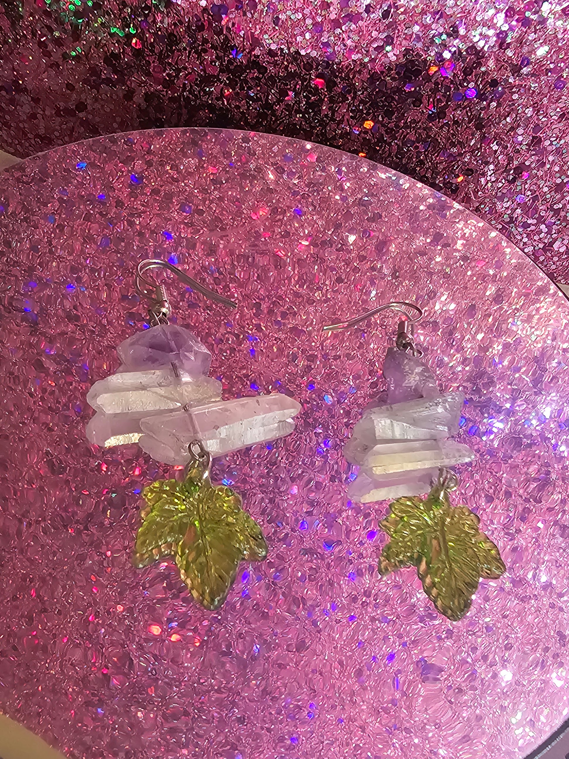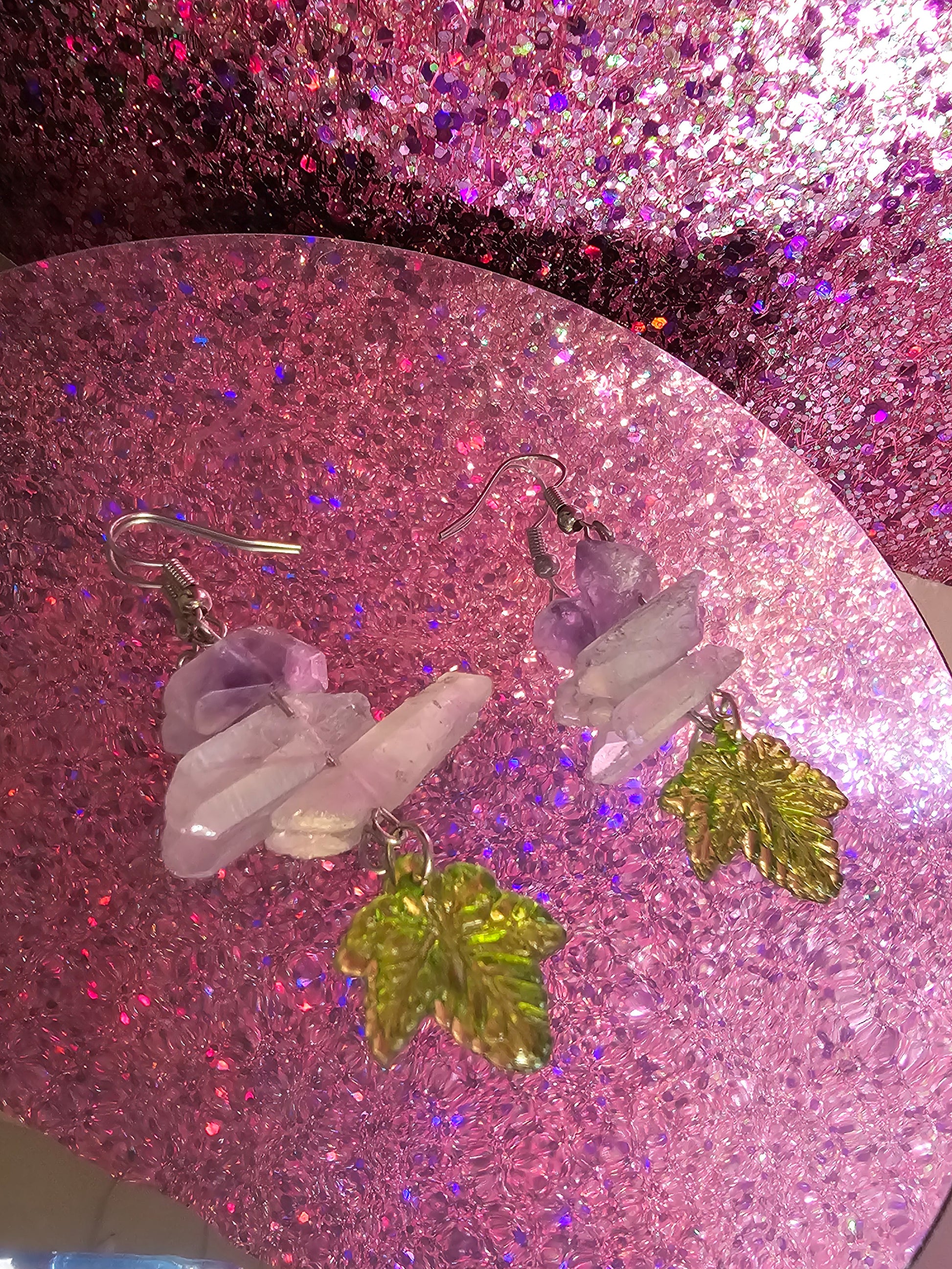 Weed leaf amethyst earrings kawaiistonerXundead collection